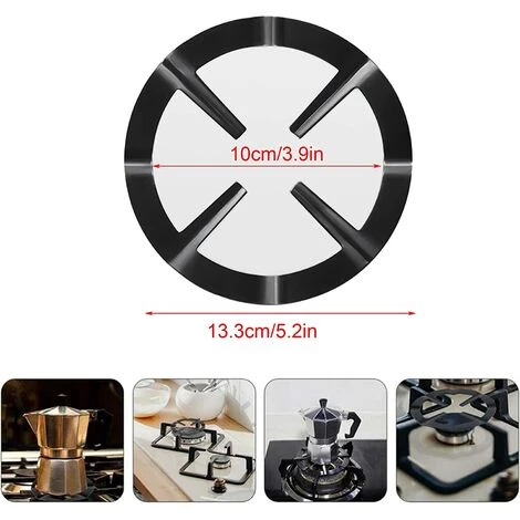 Large gamme d’applications : convient pour assortir les casseroles, les poêles, le café moka, les poêles à frire. Il a 4 pieds pour soutenir le fond du pot de moka. Il peut être utilisé comme réducteur de cuisinière à gaz.