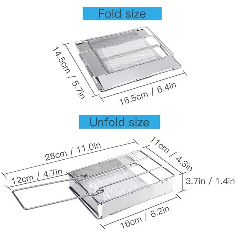 | Construction en acier inoxydable pour une grande durabilite, design pliable pour un transport facile et pratique et de stockage, ideal pour le camping en plein air, la randonnee et pique-nique. Fonctionnalites: Construction en acier inoxydable pour une durabilite extreme. Mesh distribue la chaleur net sur les tranches de pain. Longue poignee permet de rester loin de la chaleur de vos mains. se replie a plat pour le stockage et le transport facile. Leger et portable, ideal pour le camping, la randonnee, pique-nique. Caracteristiques: Materiel: acier inoxydable Deplie: 28 * 11 * 3.7cm / 11.0 * 4.3 * 1.4in Plie: 16,5 * 14,5 * 1.2cm / 6.4 * 5.7 * 0.4in Poids: 152 g / 5,3 oz Liste paquet: 1 * Grille-pain |
