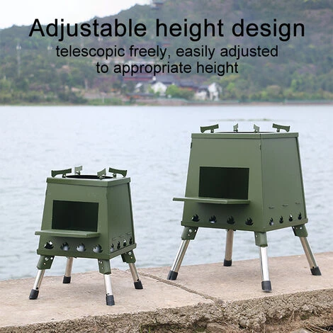 Ce four de camping portable est antirouille et pratique à utiliser, peut résister à des températures élevées avec une efficacité de combustion plus élevée. L’air chauffé se mélange aux gaz du bois en feu et s’enflamme. L’air s’écoule dans la fournaise par les évents situés près du fond. Facile à utiliser, les branches, les feuilles, les pommes de pin et le bois peuvent être utilisés comme matériaux de combustion. Parfait pour la cuisine en plein air, le camping, etc. Vous pouvez essayer.