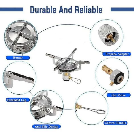 EXCELLENTE RÉGULATION DE LA FLAMME – La poignée de la vanne de contrôle vous permet de régler facilement la flamme, peu importe la hauteur que vous souhaitez. Il a un joli motif de flamme, une chaleur élevée pour les grands ou petits repas et de l’eau à bouillir. Stable, efficace et puissante, la flamme le réglage est fluide et facile à utiliser. Bracelet 100% neuf de haute qualité. Haute résistance à l’abrasion et excellente durabilité.