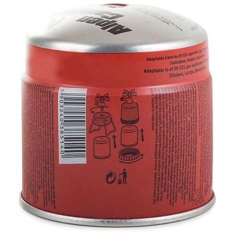 Cartouches de gaz 190g ALPENTECH universelle. Contient un mélange butane propane. Modèle type 200 conçu pour lampe à souder et matériel de camping. Système stop gaz.