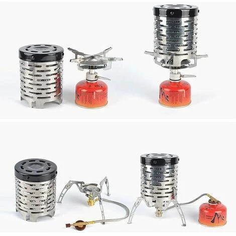 【CHAUFFAGE RAPIDE】 Inox portable Chauffe-tente en acier avec double structure de dissipation de la chaleur, la conception de la ventilation aide le 【STABLE】Il y a quatre fentes sur le fond, s’adapte parfaitement au brûleur à gaz et se tient fermement dessus.< /p>