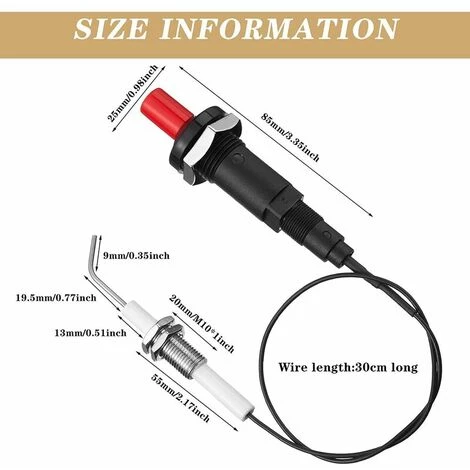 Cet allumeur piézo est facile à installer et à utiliser; Il est équipé d’une broche d’allumage filetée 1, il vous suffit de le presser pour l’allumage et sa durée de vie est de plus de 30000 fois.