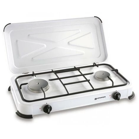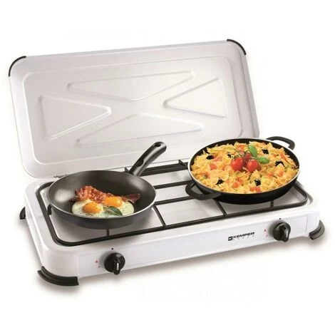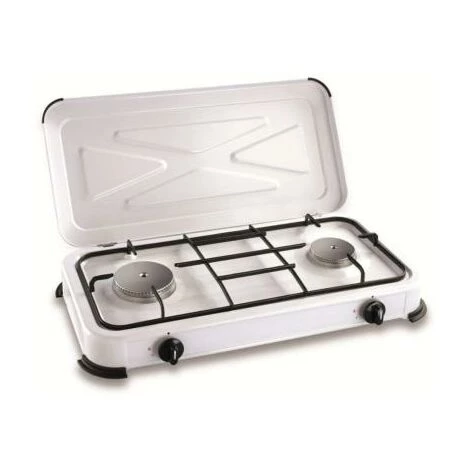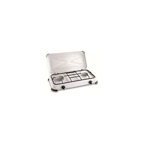 Rechaud à gaz avec deux feux en acier inox. Les deux feuxprocurent une puissance de 2600W.