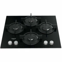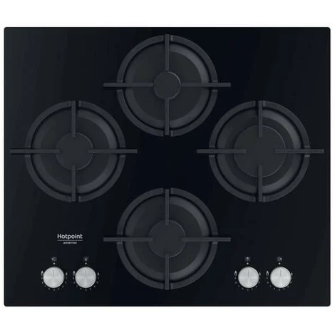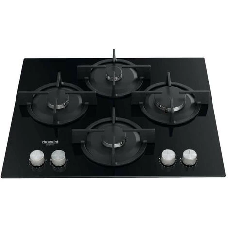 Table gaz, verre, noir, 60cm, 4 foyers dont 1 de 3kW, puissance totale 7,3kW, grilles en fonte, My Menu : 9 niveaux de flamme