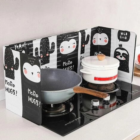 Protection: Three hinged panels unfold and surround your pan and frying pan to form a long protective barrier to prevent harmful fats from high temperatures.