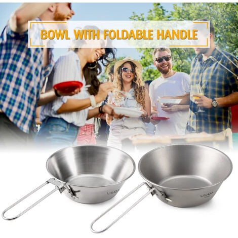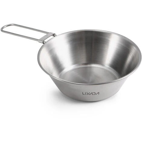 Lixada Bol En Acier Inoxydable Avec Poignee Pliable Pour Camping En Plein Air Randonnee Pedestre De Pique-Nique, Acier Inoxydable