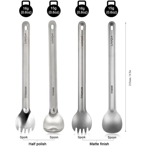 | cuillère de titane Lixada et Spork sont légers et durables à l’utilisation, idéal pour une utilisation à la maison et en plein air, comme le camping, la randonnée, la randonnée, pique-nique, barbecue, etc. Caractéristiques: Caractéristiques: Liste paquet: |