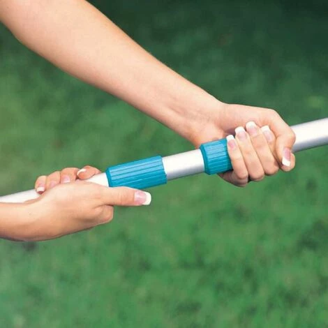 Informations produit: Manche télescopique Intex Longueur maxi: 239 cm Diamètre du manche: 2,62 cm Coloris gris Compatible avec les épuisettes de fond et de surface des grandes marques.