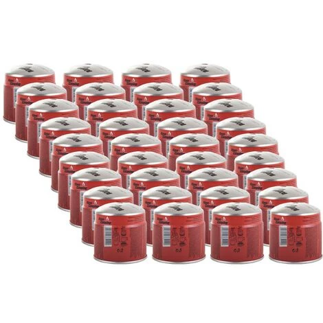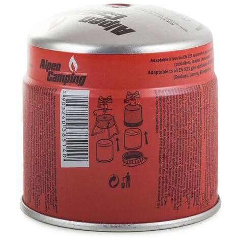 Pack de 36 cartouches de gaz 190g ALPENTECH universelles. Contient un mélange butane propane. Modèle type 200 conçu pour lampe à souder et matériel de camping. Système stop gaz.
