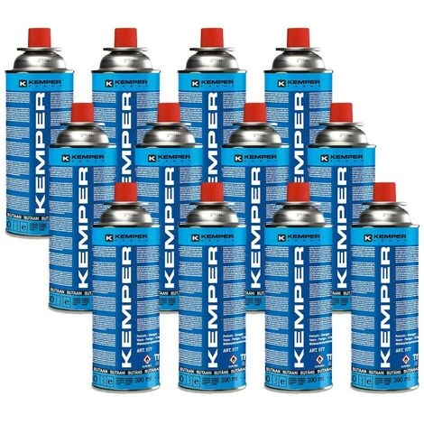 Pack de 12 bouteilles de gaz 227 g butane KEMPER UN2037 STANDARD. Idéales pour réchauds et appareils fonctionnant au gaz pour jardin, lampes de camping, chalumeaux et équipement de camping.