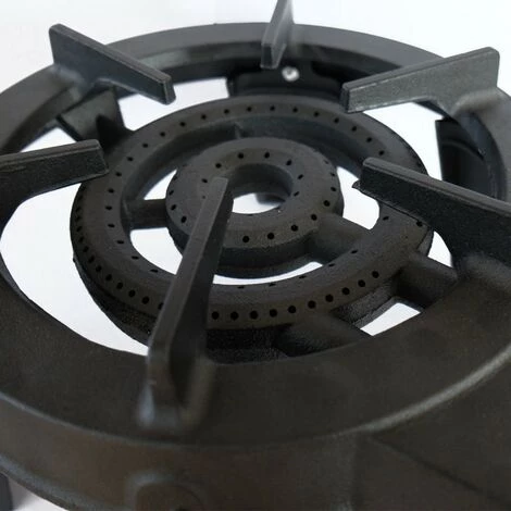 Optez pour un réchaud à gaz en fonte véritable doté de 4 pieds pour un positionnement stable et sécurisé et de 3 robinets de réglage de débit en laiton étamé pour régler deux brûleurs d’une puissance max de 9.8kW.