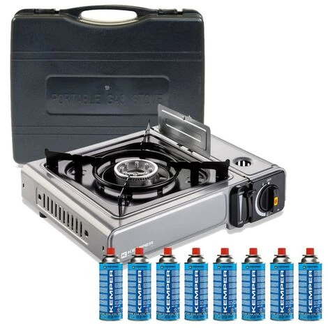 Réchaud NOMADE KEMPER INOX 1900 W fonctionnant avec une cartouche de gaz à baïonnette butane standard type 227 gr (8 cartouches incluses). Avec sa structure en inox, il bénéficie d’un compartiment sécurisé dédié à la cartouche de gaz, qui évite tout danger de surchauffe.