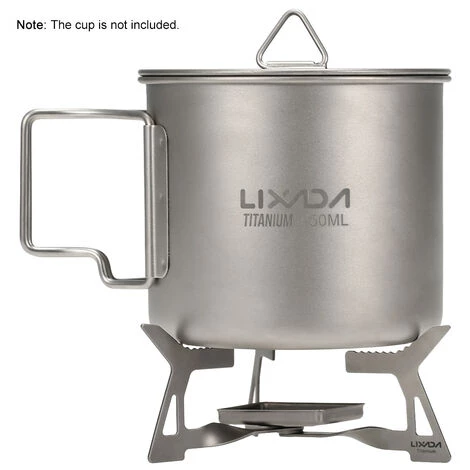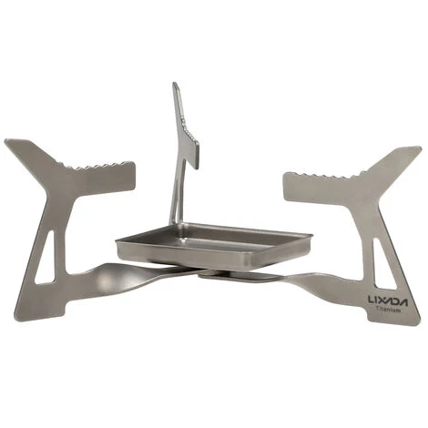 Ce réchaud à alcool en titane est extrêmement léger et résistant à la corrosion. Il comporte un mini plateau à alcool et des bras de support en dents de scie pliables, idéal pour la cuisine en plein air.