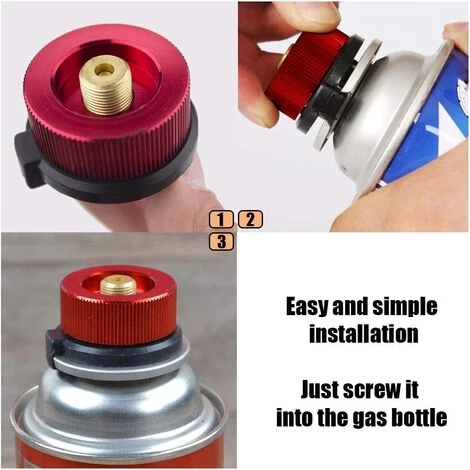 Avec cet adaptateur, vous pouvez convertir la bouteille de buse en une cartouche à valve, de sorte que vous puissiez utiliser des bidons de butane bon marché pour votre réchaud de camping.