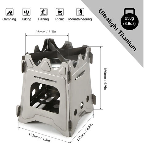 Ce réchaud de camping est fait de matériau en titane, super léger et résistant à la corrosion. Il est facile à installer et à démonter, très pratique pour le camping en plein air, la randonnée, la randonnée, etc.