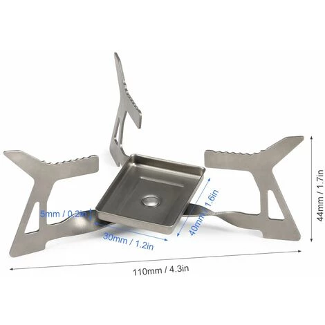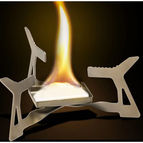 Ce réchaud à alcool en titane est extrêmement léger et résistant à la corrosion. Il comporte un mini plateau à alcool et des bras de support en dents de scie pliables, idéal pour la cuisine en plein air.