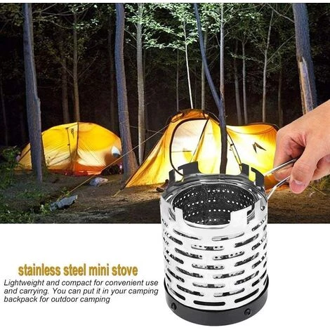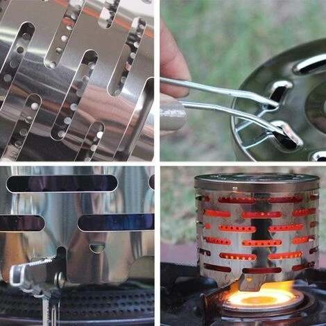 【CONCEPTION ANTI-BRULURE】:Le mini-radiateur de camping est composé de quatre fentes sur le bas,s’adapte parfaitement au brûleur à gaz et se tient debout de manière stable,avec une poignée pour retirer le poêle chaud du feu pour protéger votre main des brûlures.