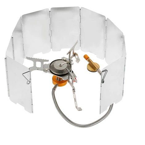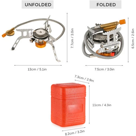 Cette cuisinière à gaz en deux parties est faite d'acier inoxydable et d'aluminium, qui peut résister à des températures élevées. Il est équipé d'un système d'allumage en céramique piézoélectrique, très facile à démarrer le feu. Après la cuisson, pliez-la dans un petit format et rangez-la dans la boîte de rangement incluse, et continuez votre voyage jusqu'à la prochaine destination. C'est un bon choix pour le camping, la randonnée, la randonnée, la survie en plein air, le pique-nique.