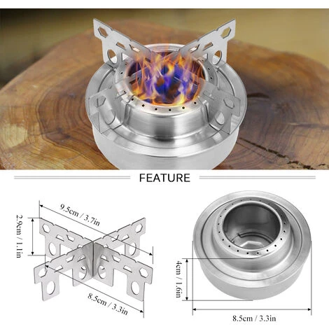 Caractéristiques: Brûleur à alcool compact, portable et léger avec support de poêle.