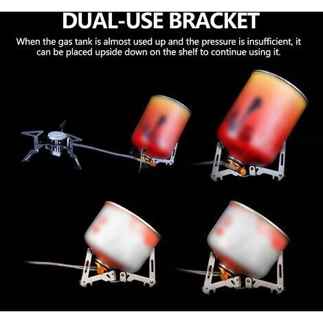 Fabriqué en acier inoxydable 304, design pliable et structure triangulaire, le support est portable et stable pour supporter le réservoir d’essence. Il peut être utilisé pour les réservoirs de gaz plats 110g, 230g, 450g et les réservoirs de gaz à cassette.