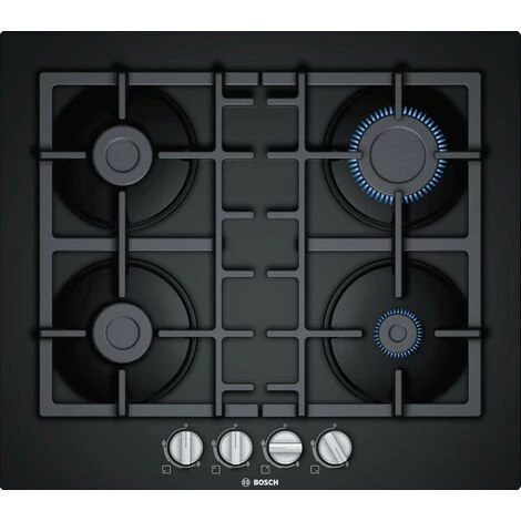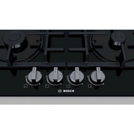 Table verre gaz Série 4 Bosch PNP6B6B90. La finition en verre offre un design premium facile à nettoyer. Boutons en épée: pour un contrôle plus ergonomique. Elégant design en verre.